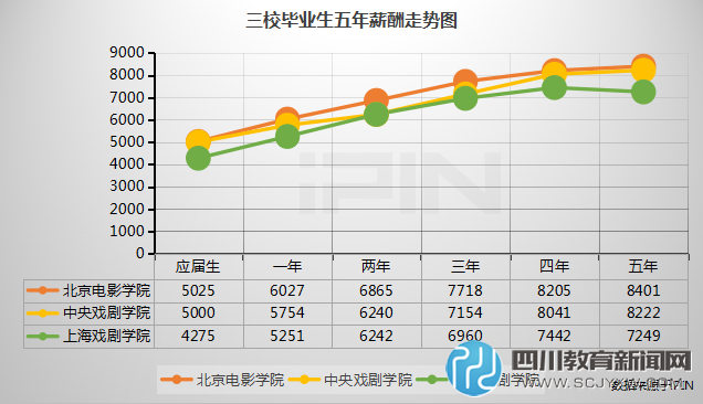 2016年艺术类大学本科招生考试已经启动,中戏、北电、上戏等纷纷发布招生简章。作为中国三大造星工厂,中戏、北电和上戏常常被人拿来PK,那么到底谁更胜一筹?不妨借助大数据来扒一扒。 高收入明星,北电稳稳超越中戏、上戏 网民们常讨论三所学校的演员谁的演技更好,艺术之外,这三大学校中,哪家出身的明星在资本市场上最有势力呢? 在2015年新近发布的“新财富明星资本权力榜”上,毕业于北京电影学院的有24位,人均财富达到了2.57亿元,而且,榜单前十大明星中,北京电影学院足足占据了五席。中戏则给榜单贡献了12位明星,平均财富达到9140万元。上戏的明星虽然入榜人数较之中戏减半,但人均财富达到了16971万元,仅次于北影。 其他毕业生薪酬:北电第一,上戏第三 除了那些少数知名的演员、导演和编剧等,他们片酬、代言费收入颇高,但三所高校的大部分毕业生还是和普通上班族一样挣着工资。大数据公司iPIN统计了毕业5年后各大学毕业生的平均月薪。数据显示,北京电影学院排名第一,中央戏剧学院第二,上海戏剧学院第三。(下图数据不包括导演、明星、编剧、摄影摄像等的片酬、代言、出场费等收入以及没有被招聘、猎头网站等收录的高收入明星数据。)