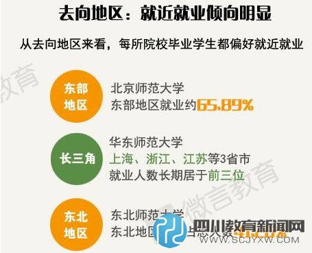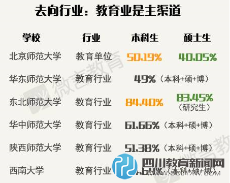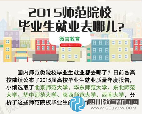 近日,教育部直属的75所院校陆续公布了2015届高校毕业生就业质量年度报告,其中北京师范大学、华东师范大学、东北师范大学、陕西师范大学、西南大学和华中师范大学6所师范类高校毕业生都去哪儿了?