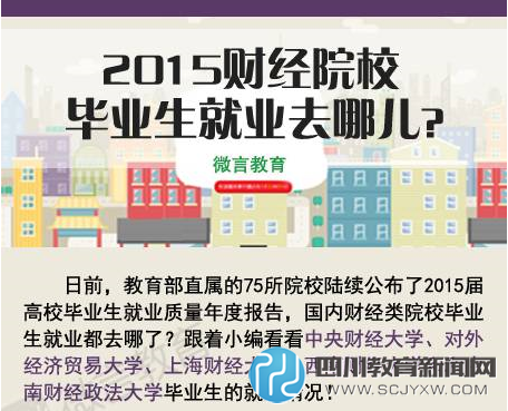 近日,教育部直属的75所院校陆续公布了2015届高校毕业生就业质量年度报告,其中中央财经大学、对外经济贸易大学、上海财经大学、西南财经大学和中南财经政法大学5所财经类高校毕业生都去哪儿了?