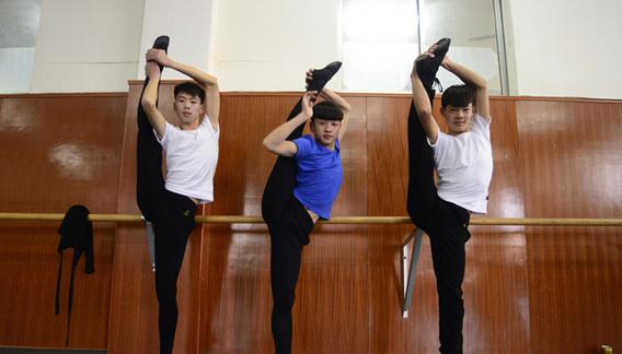 2016年2月18日,山东省文化艺术学校的舞蹈教室,参加2016年山东艺术学院舞蹈专业复试的考生们进行各种高难度技巧动作热身。他们大都是从小练舞,与舞蹈结缘,跳跃、旋转、一字马……这些枯燥的高难度动作他们每天都要练习上百遍,对于他们来说,每一个动作和表情中都饱含情感,要用心完成。 复试内容除了基本功测试,还有2分钟的即兴表演,这些男孩要在有限的时间内充分表现出自己的舞蹈表演天赋与技巧,打动评委。据了解,今年山东艺术学院舞蹈表演计划招生60人,男生24人,女生36人。