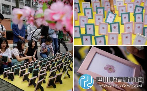 这些历年掉落的武大樱花被有心人拾起压干,裱在相框里,每一个售价30到300元不等。摊主是武汉大学新闻与传播学院的大四毕业生小险,“校花”刚摆出来就引来了大量围观购买。