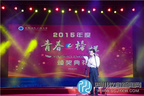 5月31日晚,作为“青春榜样”人物双创之星的获得者,他参加了成都信息工程大学2015年度“青春榜样”颁奖典礼。当晚,共有87名“十佳青年学生”、“十佳班长”、“学习之星”、“双创之星”、“志愿者之星”和“自强之星”以及3个“红旗分团委”获奖单位代表,在“青春榜样”优秀事迹展播后,登上领奖台,接受学校领导颁奖。学校3000余名师生代表参加了颁奖典礼。