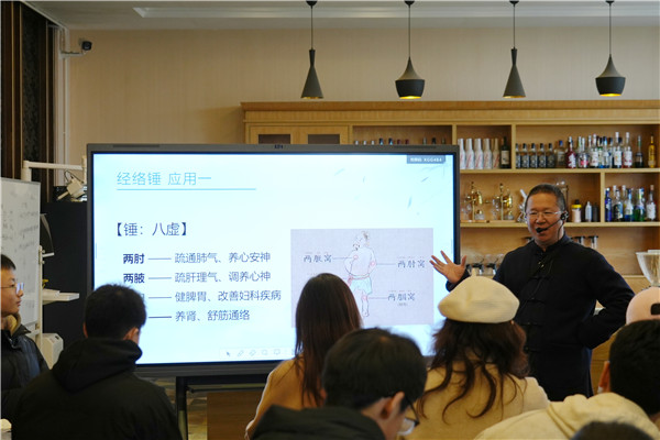 课程伊始,张相星围绕中医香疗与经络康养的核心关联展开教学,系统讲解了十二经纳地支歌、十二正经与奇经八脉的核心理论,深入阐释了经络应用中的治则、取穴以及五总八会等关键知识。授课过程中,张相星结合实例拆解理论难点,帮助社团成员夯实经络康养的理论根基,为后续实操教学筑牢基础。