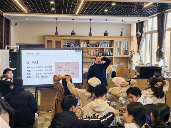 为让社团成员切实掌握实用康养技能,本次实践课特别融入经络锤专题教学环节,实现“理论+实操”的深度融合。张相星从经络锤疏通经络、调和气血的功效原理入手,详细讲解了工具选材、手工制作的实操技巧,并针对不同经络的拍打应用方法进行手把手示范指导。社团成员们认真聆听、积极动手,在实践操作中快速掌握了经络锤的使用要领,现场学习氛围浓厚。