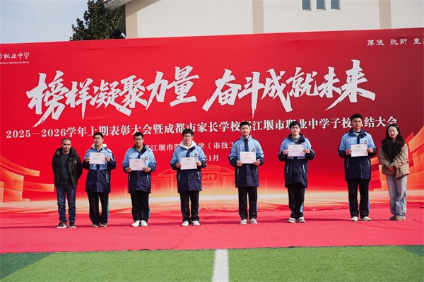 为了树立榜样、表彰优秀,激励全校学生勤奋学习、创优争先,推动家长学校的建设,促进家校协同育人,都江堰市职业中学(市技工学校)于2026年1月16日下午在操场举行了2025-2026学年上期表彰大会暨成都市家长学校都江堰市职业中学子校总结大会。