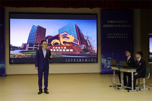 2026年1月20日,由成都市青羊区教育局主办,四川省成都市青苏职业中专学校(成都市青羊综合高级中学)、四川省张涛卓越校长工作室联合承办的成都市青羊区职业教育年度发布会在青羊区举行。本次活动以“AI赋能中职教育:动态融合与可持续成长”为主题,通过“AI赋能•职教创新”“匠心传承•年度发布”和“融合共生•未来已来”三个篇章,融合三大教学案例展示、质量报告发布、年度十件大事、战略合作签约及荣誉表彰等环节,呈现青羊职教在人工智能技术应用、产教融合、普职融通等方面的创新实践成果。