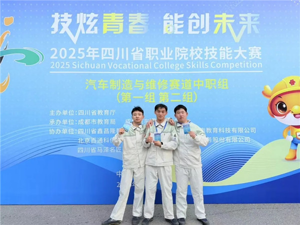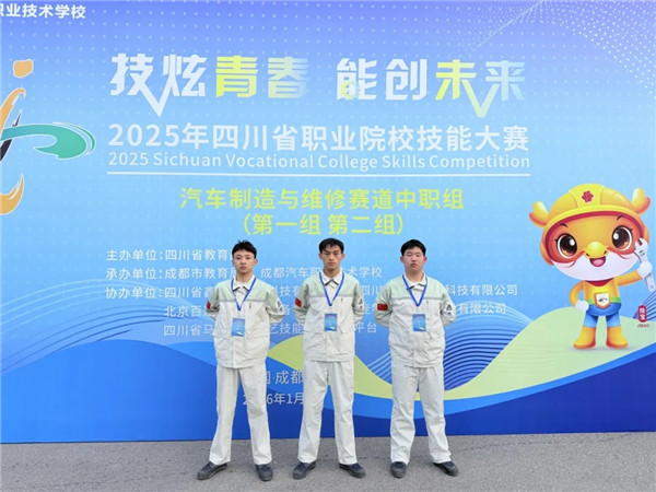 用技能诠释匠心,用拼搏书写荣光!2026年1月27日至28日,由四川省教育厅主办的2025年四川省职业院校技能大赛汽车制造与维修赛道中职组(第二组)在成都汽车职业技术学校举行。成都市机械高级技工学校汽车维修专业部教师杨蕊侨、熊倩指导的学生团队(熊松松、陈茂莛、何鑫)奋勇拼搏,在全省45支参赛队伍的激烈角逐中脱颖而出,以小组总分第二名的成绩斩获大赛银奖!