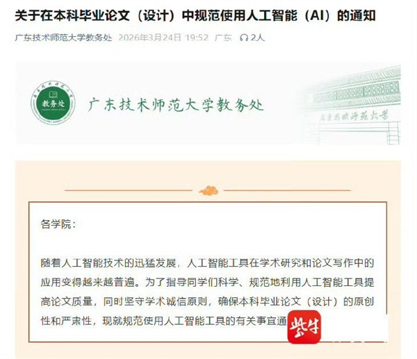 多高校,将AI检测纳入论文审核随着生成式人工智能在学术写作中的普及,其在提升写作效率的同时,也滋生了学术不端隐患。近期,全国多所高校密集出台通知,将AIGC检测正式纳入本研毕业论文(设计)审核流程,明确AI生成内容比例、检测标准及违规处理办法。