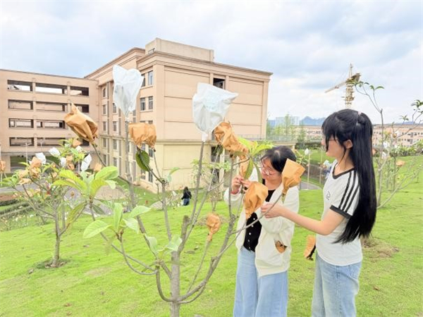 成都银杏酒店管理学院宜宾校区,枇杷套袋护果