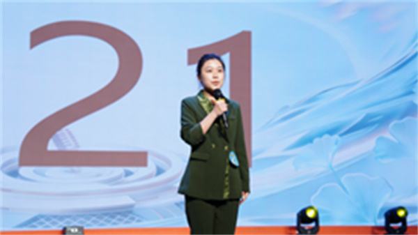 在即兴演讲环节中,6位晋级选手围绕“坚韧不拔、融古贯今、兼容和谐、向阳而生、感恩回馈”的银杏精神内涵随机抽题,90秒限时展示,以清晰逻辑、流畅表达与从容台风,诠释对银杏精神的理解。