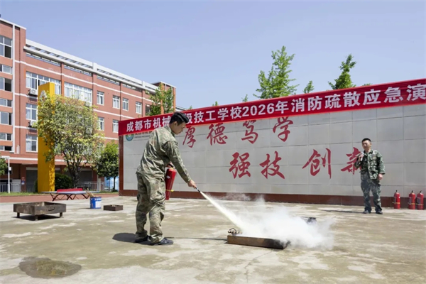 为深入贯彻落实校园消防安全工作要求,强化学生宿舍消防安全管理,提升师生应急避险与自救互救能力,成都市机械高级技工学校于2026年4月17日11:00,在恒丰楼、勤谨楼、诚敬楼、兰蕙楼及学校大操场成功开展学生宿舍消防应急疏散演练。