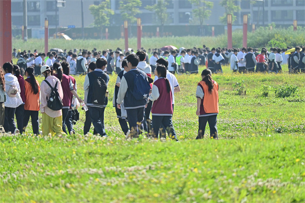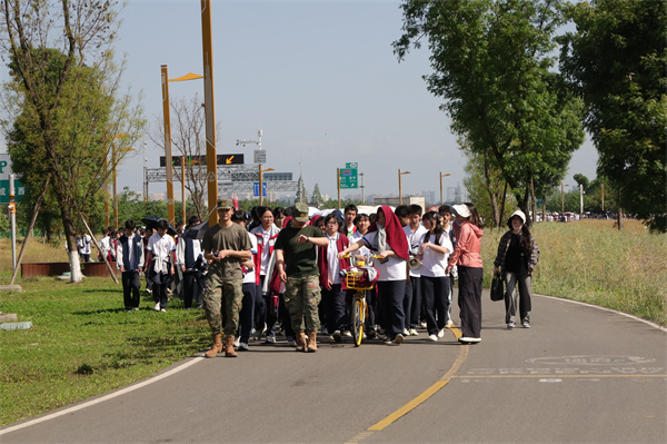 “作为高二学长,这次活动中我主动承担了带领、帮助高一同学的责任。过程中,我们会提醒大家注意安全、保持队形,帮助体力较弱的同学背包、为他们鼓劲。”2024级机械制造技术对口升学班赖同学的体验则更具深度,“在团队协作中,尽力做好衔接和榜样作用,不仅是完成活动,更是学会担当、传递温暖。”即将步入高三,徒步让他收获良多。徒步如同备考,靠的不是一时冲劲,而是坚持、耐力与心态。遇到困难咬牙坚持,脚踏实地稳步前行,才能攻克难关。这次活动让他懂得自律与团结,调整好了心态,以更好状态迎接高三。