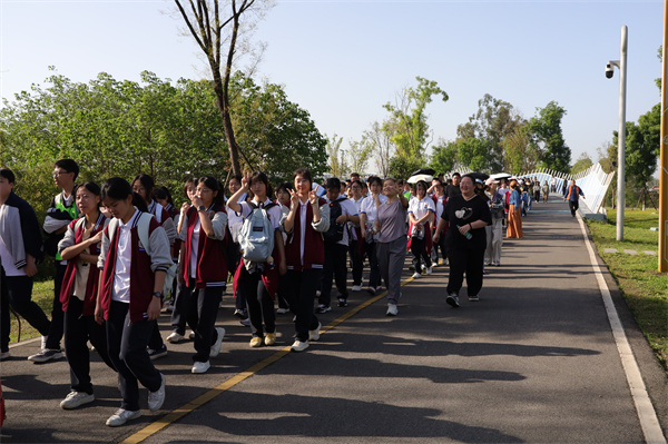 四月的天府绿道草木葱茏,繁花似锦。同学们精神抖擞地行进在绿道上,时而疾步前行,时而驻足赏景,欢声笑语间成为春日里一道亮丽的风景线。