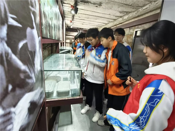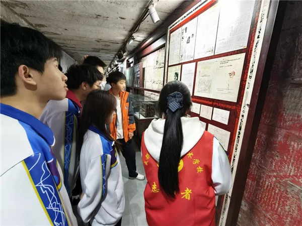 本次讲解的核心环节,是进入由原川齿厂防空洞改造而成的川齿记忆展览馆。队员罗铖宇、郎旭航、李芯瑞按照馆内展陈顺序,依次讲解川齿人物、共筑家园、牢记嘱托、匠心器物、辉煌成果、精神传承七大板块。