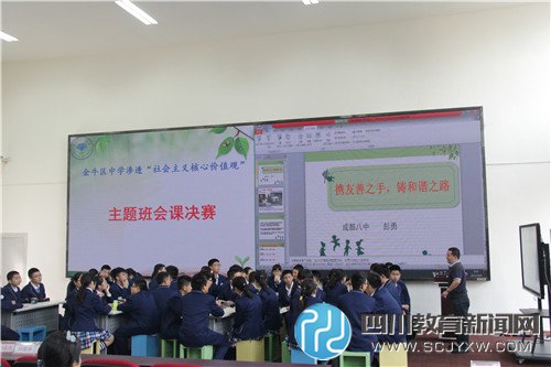 四川教育新闻网成都10月12日讯(陈海燕 通讯员 何国章) 10月12日,金牛区2015年中学主题班会课决赛在成都七中八一学校举行,主题是自觉树立和践行社会主义核心价值观。本次主题班会赛课汇集了金牛区的中学优秀班主任和优质课程资源,是一次教育智慧的探讨,教育艺术的交流。每一位参赛老师都准备充分,展示了过硬的素质和技能,对主题都有独到的见解和剖析。 据悉,来自十八中的刘霞老师以当前热点——诺贝尔奖获得者屠呦呦新闻事件引入主题,引起同学们热烈讨论。在观看视频《年轻人可以为世界做什么》后引起同学们深思“我可以做什么”,他们积极发言,有的说要对人友善,如扶扶老人,帮助同学;有的说假期去福利院帮助小朋友辅导作业,还有的说爱国不一定要大道理大行动,只要做一行爱一行,做好身边的小事,每个人做好自己,社会就会好起来。刘老师最后说:“微言可担大义,个人推动国家。每个人做最好的自己,做一个榜样,可以改变家庭,在家人的帮助和鼓励下,可能为国家做一些事情,然后,甚至还可能改变世界。愿每一个同学最求最好的自己。” 成都八中彭勇老师展示的是《携友善之手,铸和谐之路》。通过对比成都的两起道路交通新闻,同学们理解到与人相处,善恶有别。同学们踊跃发言,分享曾经的不友善和友善的行为,他们能直面曾经的不友善,让心灵阳光起来,明白友善不是无原则的包庇和纵容,分享友善之举,可以温暖你我他,要勇于友善,弘扬社会正能量。 想想十年后的自己,十年后你想成为……成都四十四中邱宇枫老师给高一(2)班的同学准备了一份特别的礼物——播放前一晚给同学们录制的音频《梦想中十年后的自己》。十年后,有同学想成为医生、老师、律师、犯罪心理学家、环球旅行者,也有同学想有一座自己的房子,和喜欢的人在一起,想有几个知心朋友,生活普普通通,父母身体健康,可以多陪陪他们。面对遥远的梦想,从即刻开始我们应该怎么做呢?邱老师让同学们从25岁倒推,要实现梦想,每一岁的自己应该是什么样子。杨雨覃同学说:“25岁那年,我会拥有一个自己的游戏工作室,有一款让很多人都喜欢的游戏,同时出一本绘本。24岁,推出一款自己喜欢的游戏;23岁,筹备工作室;22岁,实习积累经验;21岁,学习计算机方面的专业知识;20岁,学习美术、平面设计方面的知识;19岁,选择美术专业学习;18岁,考上985以上的大学,希望去德国留学;17岁,16岁,15岁都努力学习。”在实现个人梦想时,同学们觉得需要一些优秀品质并一直坚守,如爱国、敬业、诚信、友善等。