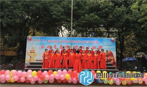 下午是石室联中(西区)主题为“乐动青春梦,唱响主旋律“的弘扬社会主义核心价值观艺术节文艺汇演。学校特别邀请了家长、社区居民一起参与,以书画及摄影作品展示、合唱、歌舞、校园剧表演为载体,展示学校学生的青春活力,通过学校、家庭和社区三位一体的方式,小手牵大手,共同唱响社会主义核心价值观的主旋律,传递正能量。