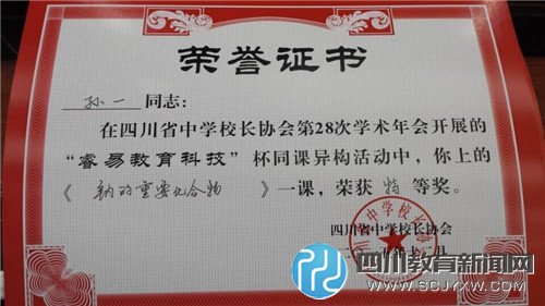 四川教育新闻网成都12月4日讯(陈海燕 通讯员 万根福 张国琴 孙一) 四川省中学校长协会第28次学术年会于12月2日-4日在广安市邓小平城乡发展学院暨友谊中学举行。成都二十中副校长梁芹带队,四川省高中化学优质课赛课一等奖获得者孙一老师献课、周宗碧、张国琴老师参加了此次年会听课学习。成都二十中作为组织申报同课异构的学校获得年会表彰,孙一老师执教的《钠的重要化合物》获此次年会“睿易教育科技”杯同课异构活动特等奖。