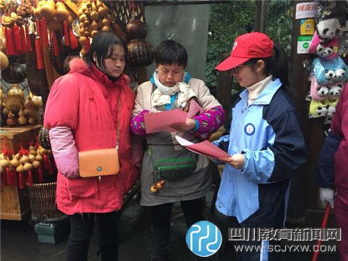 四川教育新闻网成都12月22日讯(贾元东 通讯员 雷黎明) 2015年12月21日,西北中学志愿者服务小队在锦里开展了环保宣传活动,拥抱绿色生活。志愿者服务小队的11名同学在教育处老师带领下,进行了环保知识宣传单的发放以及关于环保意识的问卷调查,得到了不少游客积极的反响。