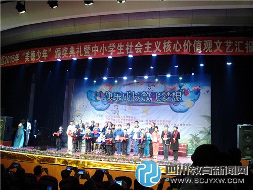 四川教育新闻网成都12月31日讯(通讯员 毛羽升) 12月30日下午,由共青团温江区委、温江区妇联、温江区教育局、温江区文明办、温江区关工委联合举办的“温江区2015年‘美德少年’颁奖典礼暨中小学生社会主义核心价值观文艺汇报演出”活动在区青少年活动中心“梦想剧场”隆重举行。万春学校八年级四班唐欣蕊同学荣获2015年温江区“美德少年”光荣称号并上台领奖!