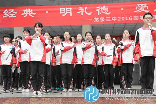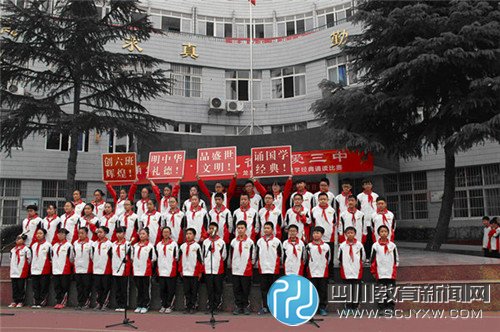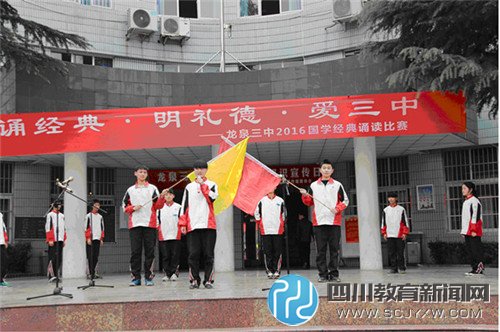 四川教育新闻网成都4月5日讯(贾元东 通讯员 李建军)为培养孩子高尚的道德情操、提高孩子的文化素养,培育和践行核心价值观,积极传承民族文化,深入挖掘华夏文明深厚的文化底蕴,感悟中华民族的文化魅力,弘扬中华优秀传统文化,激发爱国热情,增强民族自豪感和使命感,强化学校国学课程建设,充分发挥语言文字在传承中华优秀文化和学校教育主战场的作用,龙泉驿区第三中学校于4月1日举办了“诵经典、明礼德、爱三中”的“国学经典朗诵活动。