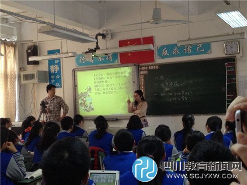 四川教育新闻网成都4月14日讯(赖波 通讯员 袁大彬 彭代静) 2016年4月14日,在成都市新都区第二中学书院楼高一、二班教室,语文老师汪云花代表学校参加了民盟“烛光行动”教师翻转课堂技能大赛复赛。民盟“烛光行动”教师翻转课堂技能大赛复赛活动也因此正式拉开了帷幕。由成都市教育科学研究院院长罗清红,成都市教科院督导评估监测研究所所长卿子俊,四川师范大学教授周雄俊以及其他七所学校校长组成的专家评委团莅临新都二中复赛现场进行了观课、评课、议课。