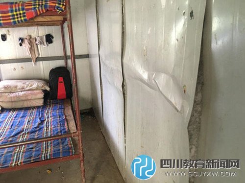 河南省周口市沈丘县槐店镇民族中学内的样板房,墙面变形后露出填充泡沫。 钢板墙面变形凸起,墙内露出填充泡沫,河南省周口市沈丘县槐店镇民族中学两百多名学生从去年9月开始,已在这样的板房内居住至今,还不知将何时搬离。近日,该校校长陈素云向澎湃新闻(www.thepaper.cn)反映,学校按教育部门和消防部门要求整改教学设施,但新建的学生宿舍和食堂被强制拆除,学生只能在临时搭建的板房内居住。他多次向相关部门领导反映无果。 对此,沈丘县教育局表示,民族中学租用农田修建教学建筑,属于违建被拆,且拆除后迟迟不按要求整改易燃板房宿舍。目前教育局已给学校下达停止办学通知,教育局可以帮忙找学校接收民族学校学生。