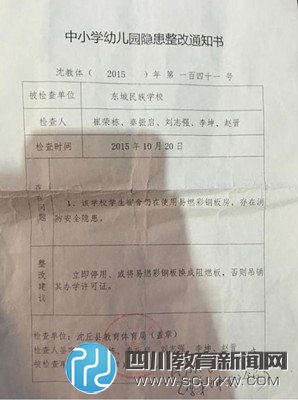 家长:民族学校办学好收费低 记者采访发现,该校的学生大多来自农民工家庭,一个家庭常有两三个孩子,父亲在外打工,只有母亲或老人在家看管孩子,家大多在乡下,离学校也较远。之所以让孩子在民族学校念书,而不是选择其他公办学校,民族学校六年级学生赵凯文的父亲表示:“民族学校教学质量好,老师负责,收费又低,一学期学费包括住宿六百多元,而公办学校一学期最低也要一千多元,住宿费另算。” 然而让他担忧的是,今年春节回家后,发现孩子住在了板房里。“板房是彩钢板建的,里面填充的是泡沫,很容易着火,前不久新闻还报道过我们那里养老院板房着火,所以很担心孩子的安全。” 记者从沈丘县公安局出具的消防监督检查记录上看到,民族学校的彩钢板房存在安全隐患,并限期十五日内整改结束,检查时间是2015年6月26日。 2015年10月20日,沈丘县教育体育局也发布过中小学幼儿园隐患整改通知书,建议立即停用、或将易燃彩钢板换成阻燃板,否则吊销其办学许可证。 “我有两个孩子在这里上学,还有一个孩子在读初三。这学校要是不能继续办了,哪里还能收留我的两个孩子,孩子上哪里去读书呢?”谈到学校如果被停办,民族学校二年级学生的母亲赵玉鑫表达了担忧。 |