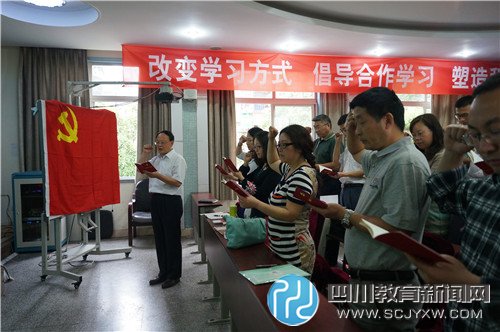 四川教育新闻网成都5月19日讯(黄小林) 5月18日,石室联中(西区)党支部继“两学一做”启动会后,以“重温入党志愿、重温入党誓词、做一名合格的教育工作者”为主题,开展了一次党课教育活动。