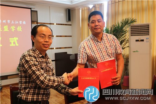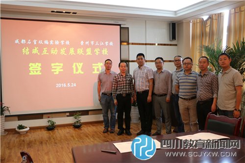 参观团在刘元主任的带领下参观了学校校园,随后,学校书记王国贤在会议室与参观团进行了互动交流,就石室双楠的办学历史、办学理念、办学特色及教育教学情况进行了一一介绍。崇州市三江中学对“双楠云校”已有了解,在此次交流活动中,崇州市三江中学决定与石室双楠学校结成兄弟学校,并正式签订协议结成互动发展联盟学校,双方将在精品课程、校园文化、师资培训等多方面进行学习交流,以提升学校办学品质。