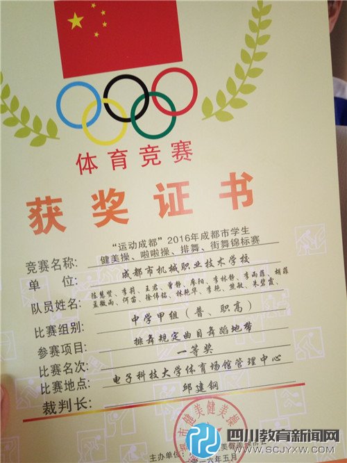 四川教育新闻网成都5月31日讯(贾元东) 2016年5月29日,成都市机械职业技术学校啦啦操运动员在教练员袁梅、领队赵平的组织带领下,参加了由成都市健美操协会主办,成都市锦冠青少年体育俱乐部、体育文化传播有限公司协办的“运动成都”2016年成都市学生健美操、啦啦操、排舞、街舞锦标赛。