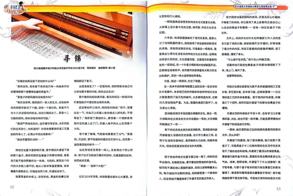 获奖作品《寻锦》的灵感,始于一次特殊的寒假作业。电子科大实验中学素来注重科技与人文的融合,并将此理念融入特色教学中。每年寒暑假,学生都需要完成以“科技与人文融合”为主题的特色作业,如科创画、科创文学或科创实验。在杨张锦天初一那年的寒假,学校布置了一项颇具挑战性的作业——要求学生独立编撰一本书,内容涉及生活、学习、科技、军事、时事等多维度。也正是这项旨在鼓励跨界思考的作业,许多学生的潜能得以被发掘,写作能力获得了显著提升。