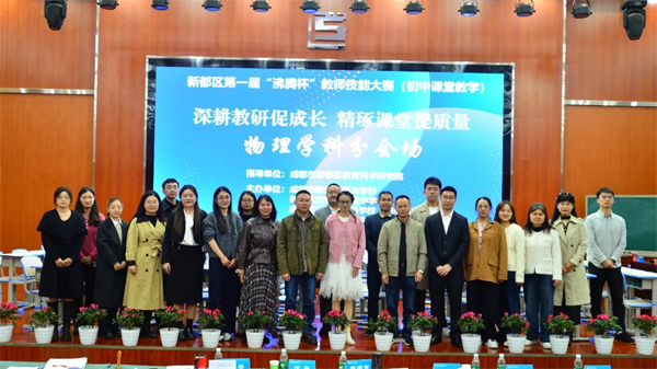 10月21日至23日,新都区第一届“沸腾杯”教师技能大赛(初中课堂教学)决赛(语文/物理/化学/生物专场)在成都市新都区蜀龙学校圆满落幕。作为本次大赛的承办校,蜀龙学校汇聚了来自蜀龙学校、新都教科院附中、香城大江中学、毗河中学、三原外国语学校共25位优秀教师同台竞技。三天赛程中,课堂思维火花迸射,教研探讨共识深化,为全区初中教学高质量发展注入鲜活动能。