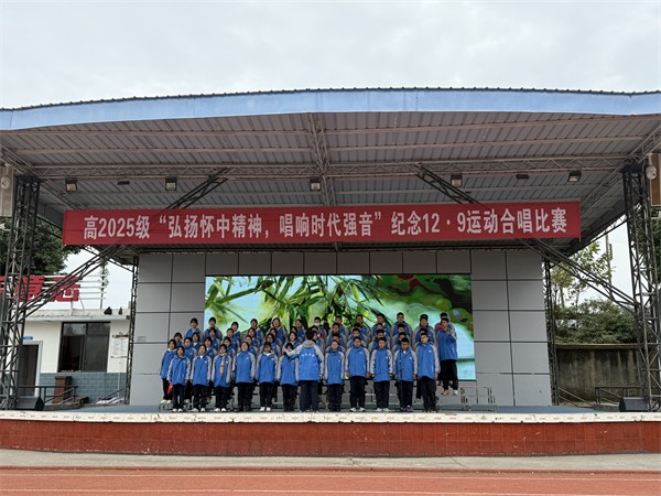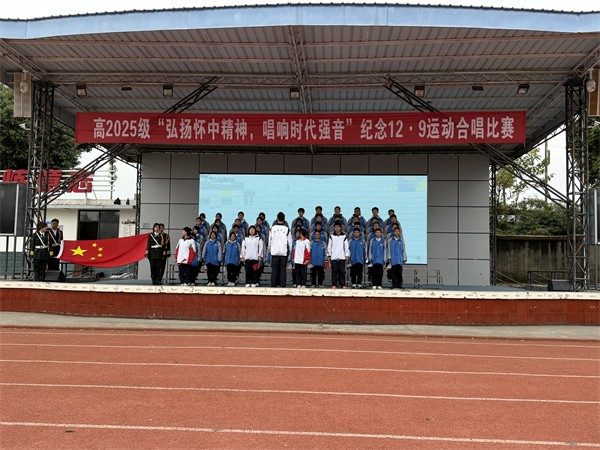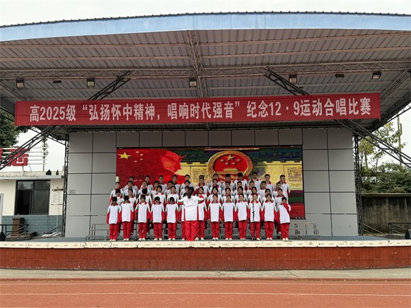 2025年12月3日下午,崇州市怀远中学高2025级“弘扬怀中精神,唱响时代强音——做文明自信的怀中人”合唱比赛在学校运动场主席台隆重举行。来自该年级的20个班级齐聚一堂,学子们以嘹亮歌声传承“12·9”运动爱国薪火,用自信风采展现新时代青年担当,整场活动组织严谨、氛围热烈,实现了思政育人与艺术实践的双向赋能,圆满达成预期效果。