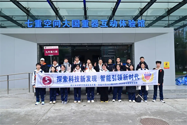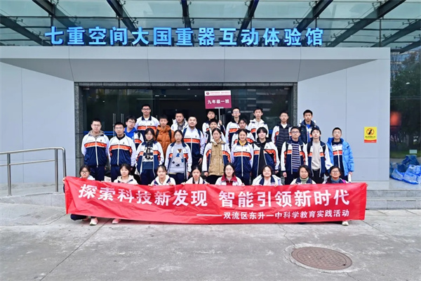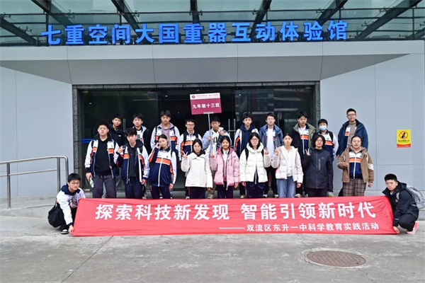为激发学生科技热情,厚植家国情怀,2025年12月13日,成都市双流区东升第一初级中学(以下简称:东升一中)九年级学子走进七重空间大国重器互动体验馆,开启了一场集科技探索与实践体验于一体的研学之旅。