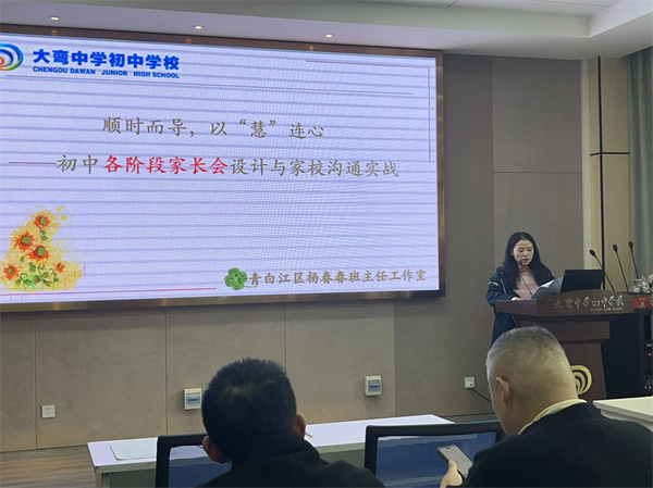 10月,由青白江区教育局研究培训中心主办,四川省成都市大弯中学初中学校与区杨春春班主任工作室联合承办的“家校连心育新苗,沟通聚力共成长”区级德育研讨会,在大弯中学初中学校顺利举行。区教育局德育教研员王方义老师、各中学德育负责人、全区初中班主任代表及工作室成员参会,共同聚焦“班主任如何与家长有效沟通”,共话育人策略。