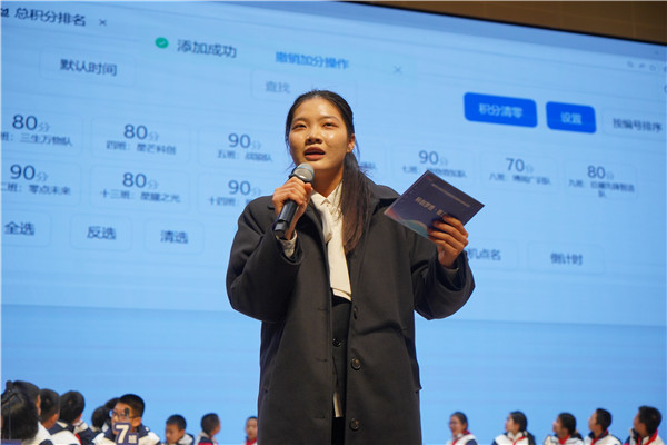 必答题环节,10道题目考验基础功底,各班同步作答、实时计分,屏幕上的分数你追我赶,紧张感瞬间拉满;抢答题环节点燃全场热情,“开始抢答”的指令刚落,各战队飞速应答,尽显超强反应力;风险题环节更是悬念迭起,各战队权衡再三、果断决策。有的战队凭借深厚积累,拿下30分填空题满分,引来全场欢呼;有的战队虽挑战失利,但敢于尝试的勇气,赢得阵阵掌声。