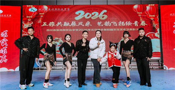 2025年12月29日晚,四川省崇州市怀远中学的校园内,一场主题为“五雅共融展风采,艺韵飞扬绘青春”的元旦晚会暨校园文化艺术节表彰大会如约而至。当夜幕低垂,华灯初上,怀远中学的学子们怀揣着对新年的憧憬与对艺术的热爱,齐聚一堂,共同开启了一场视听盛宴、一场青春与梦想交织的旅程。xhJ四川教育在线-四川教育讯息