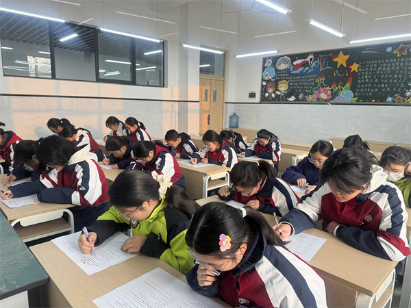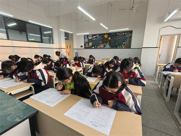 在“单词识记王争霸”的赛场上,同学们全神贯注,笔尖疾走如飞。他们时而凝神思索,在词海中精准捕捉目标词汇;时而自信挥洒,将一个个复杂拼写工整呈现于纸面。空气中弥漫着紧张的节奏感,也流淌着思维碰撞的轻微火花。在这场对词汇积累与记忆耐力的双重考验中,每位选手不仅展现了扎实的语言功底,更在方寸纸页间,让平日积累的词汇如星点般苏醒、串联,最终汇聚成一道知识的微光,真正诠释了“词海在笔尖下生辉”的赛题意境。