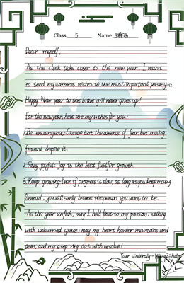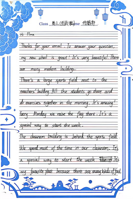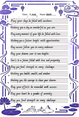 在书写上,同学们展现出对英文书法美的追求:圆体流畅典雅,印刷体清晰工整,点缀其间的艺术字母更显巧思。内容上,从对师长的感恩、对同窗的鼓舞,到对家人的思念,质朴真诚的语句在英文的表达中焕发出跨越文化的情感力量。