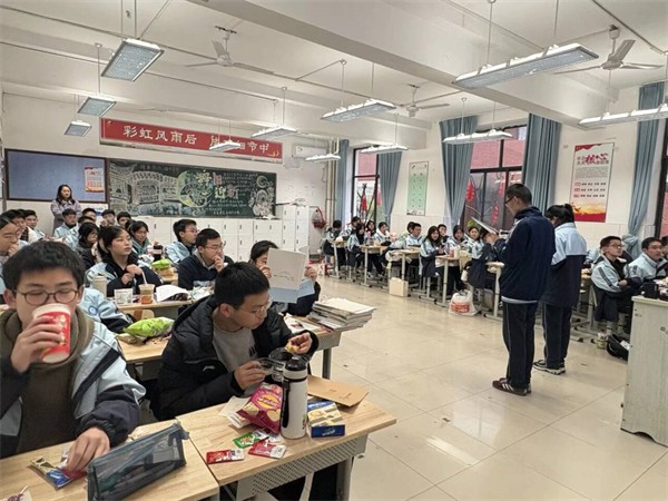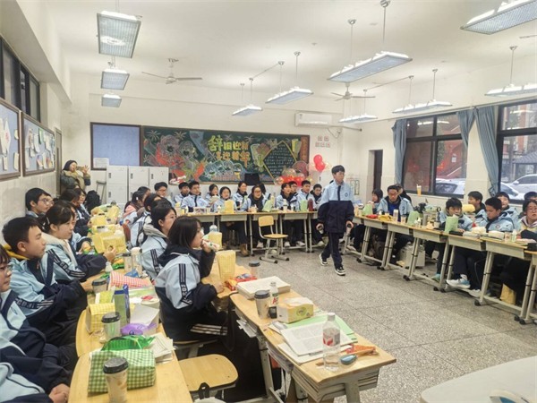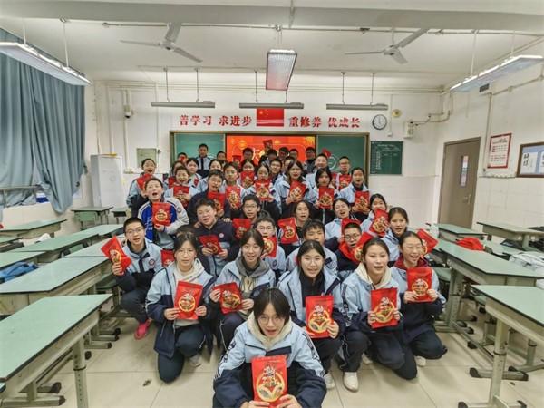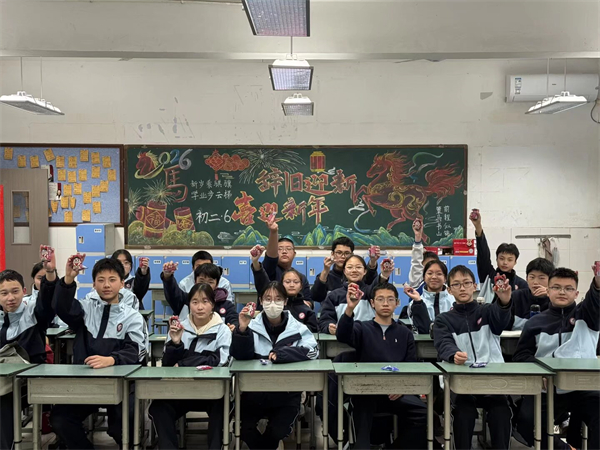教室里,红灯笼映着福字,手工窗花点缀窗棂,处处洋溢着浓厚年味儿。班会现场温情满溢:“才艺展示”环节,歌曲演唱清亮婉转,小品表演妙趣横生,同学们用青春风采点燃全场热情;“成长分享”环节,大家细数一学期的收获与蜕变,或畅谈学业突破,或感念师友温情,真挚话语间满是成长的喜悦;“寄语未来”环节,同学们写下新年心愿与奋斗目标,将对未来的期许藏进字里行间,共同约定以昂扬姿态迎接新挑战。