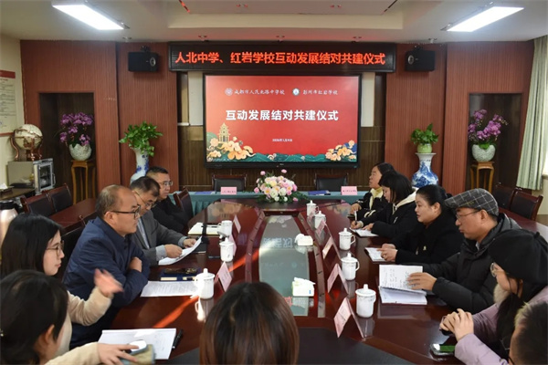 为深化教育教学交流,推动区域教育协同发展,1月8日,成都市人民北路中学校(以下简称:人北中学)与彭州市红岩学校结对共建仪式在人北中学举行。人北中学党支部书记、校长陈悦熙,彭州市红岩学校党支部书记、校长刘波,以及两校行政管理人员与教师代表共同出席签约仪式。