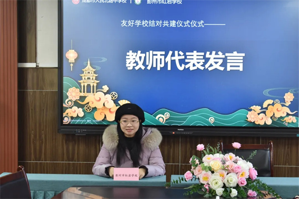人北中学教师李淑娟与红岩学校教师陈瑚恬影作为代表发言。她们从一线教育者的视角,表达了通过校际合作促进教师专业成长、适应多元化教育环境的共同愿景,展现了教育工作者的情怀与智慧。