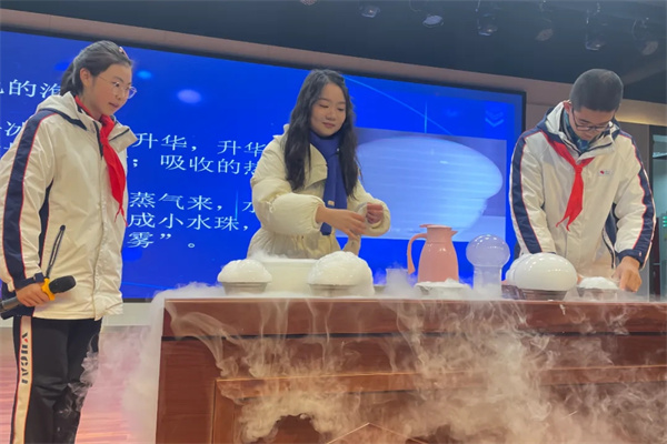 化学组为初三学子打造“化学赋能生活”实践项目。自制净水器、空气质量监测、自制供氧器等课题,让化学实验走出课本,走进真实生活场景。当自制的氧气使带火星木条复燃时,现场欢呼是对科学最直接的礼赞,也完美诠释了化学的实践性与生活化。