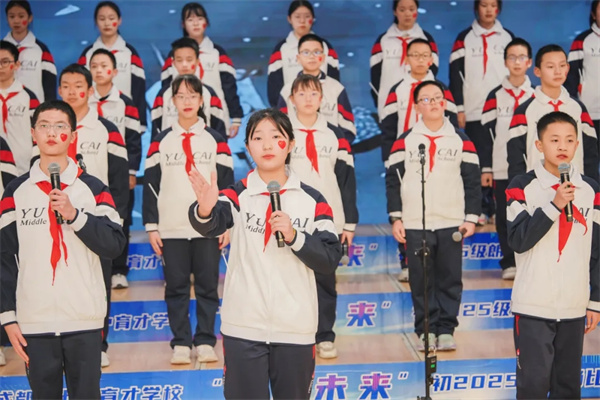 AI赋能的美育活动更是让创新表达百花齐放。初一“声动未来”朗诵展演中,学子们结合AI元素诠释“科技强国”信念,将研学感悟与科学情怀转化为激昂的语言表达;初二“剧梦未来”戏剧展演以《西游记》为蓝本,融入AI技术与非遗特色,各班用青春视角重构经典,在角色塑造与团队协作中,实现了传统与创新的碰撞。附属小学的跨学科节目更成为小初衔接中“未来素养”培养的生动预演,让“以戏育人、以文化人”与科技创新精神同频共振。