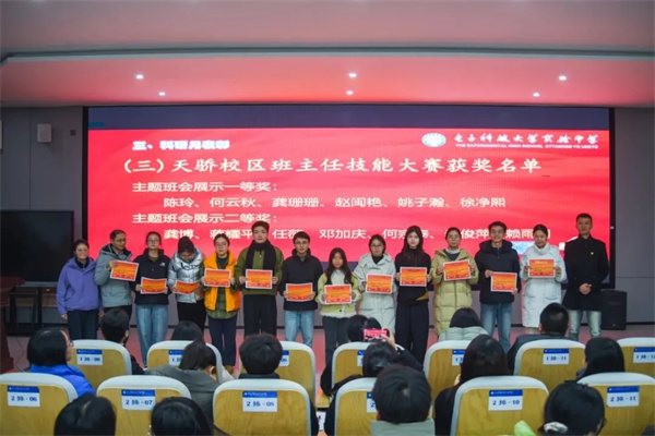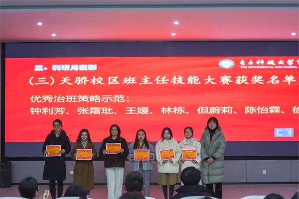表彰环节将大会推向高潮,学校依次表彰了在新教师汇报课、骨干教师与党员示范课、班主任技能大赛中获奖的教师。这份荣誉不仅属于台上领奖的每一位教师,也凝聚着他们身后教研团队的集体智慧与全力支持。