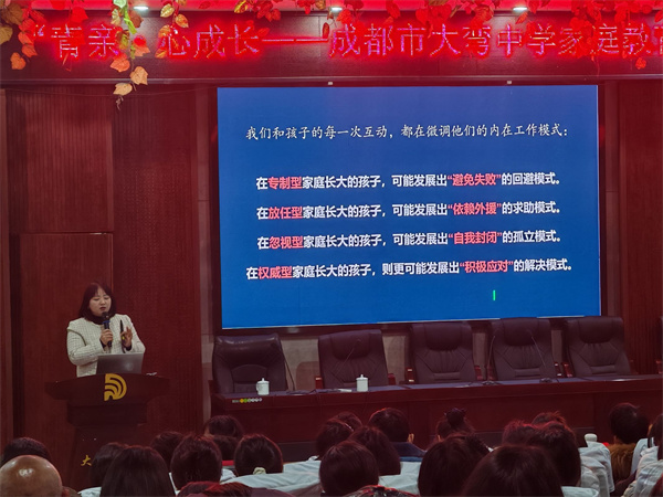 青春期撞上初一适应期,亲子沟通总碰壁?专注力差、手机上瘾、厌学拖延、情绪对抗……这些难题是否让你焦虑不已?为帮助初一年级家长破解教养困惑,搭建高效亲子沟通桥梁,妇联暖心送教进成都市大弯中学,特邀专家开展“当教养方式遇见青春期大脑——初一适应期亲子双赢之道”专题讲座,为家长们带来了一场实用又深刻的育儿指南。
