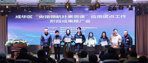 冬日暖阳,教育有声。在数字浪潮奔涌的今天,教育正以更智慧、更融合的姿态面向未来。2026年1月15日,由成华区教育局、区教育科学研究院、区教育技术装备中心等单位指导,由朱宁AI+教师数字素养提升工作坊等支持,成华区“中央电化教育馆领航社素质课”阶段成果推广会在成都市双庆小学校圆满举办,以进一步展示试点应用成果,总结分享经验,凝聚前行力量。