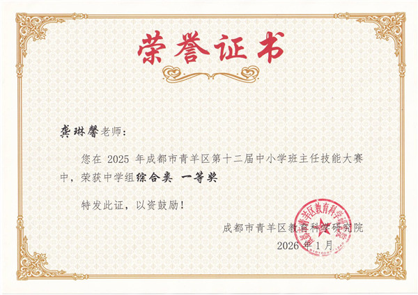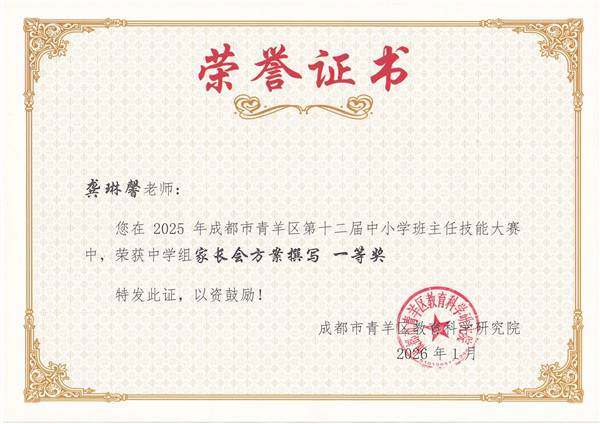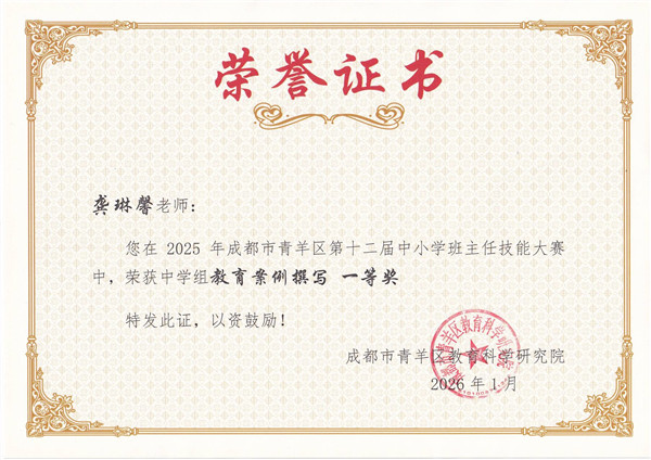 成都三十七中,教师,青羊区班主任技能大赛一等奖