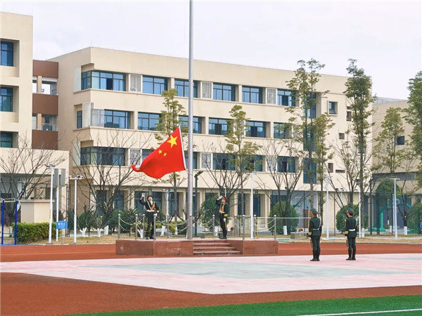 全体肃立,少先队员行队礼,其余师生行注目礼,共唱国歌,以赤诚之心致敬祖国,以昂扬之姿奔赴新程!