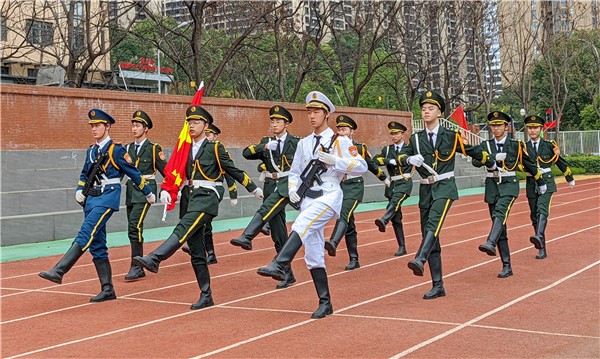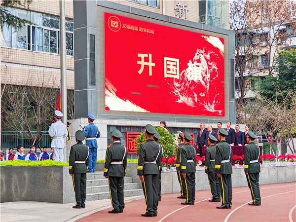 7点40分,三友路校区口风琴社团一曲《萱草花》悠扬奏响,拉开了典礼序幕;9点20分,安宁河校区合唱社团的《红旗飘飘》歌声嘹亮,尽显少年意气。